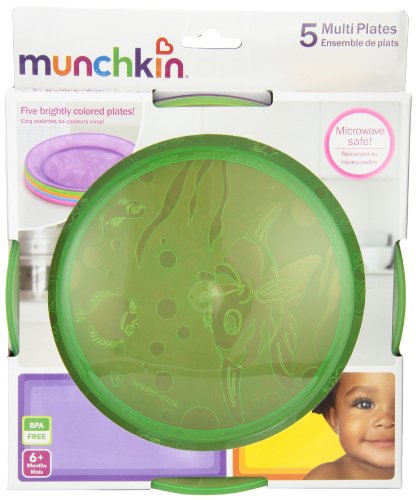 カラフルなプラスチックプレートのセットです。お料理が一層おいしく見える暖かい色合いになりました。魚のかわいいイラストが透かし彫りのようになっています。5色のカラーセット。パーティー用の食器にもぴったり。サイズは直径約19cm。アメリカのベビー用品ブランド、munchkinの商品です。同じデザインのコップと合わせてどうぞ。