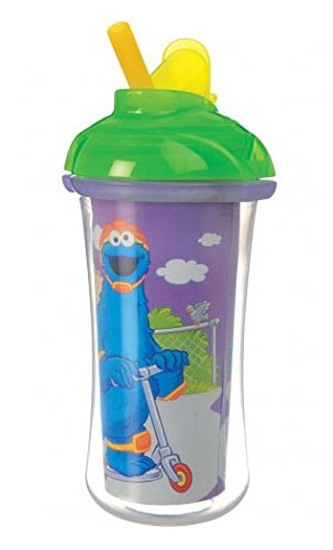 セサミストリートのストローカップです。エルモやクッキーモンスターが元気に遊ぶ楽しいイラスト。カラフルな色づかいがとってもアメリカン。二重構造なので結露せず便利です。ストローをしっかり収納でき、液漏れもしにくいです。容量9オンス(約266ml)。ジュースやお茶用に。熱い飲み物は入れないでください。電子レンジ・食洗機はご使用できません。BPAフリーの素材で出来ています。対象年齢1歳以上