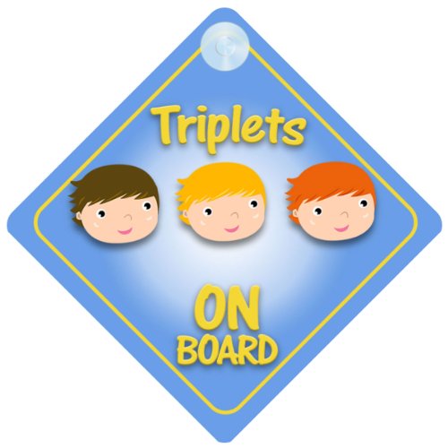 Triplet Boys On Board Car Sign New Baby / Child Gift / Present / Baby Shower Surprise by mybabyonboard UK