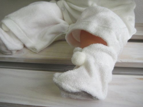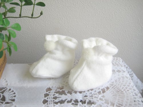 無撚糸パイル ブーティー(9センチ)新生児ファーストシューズ ホワイト