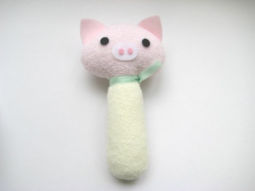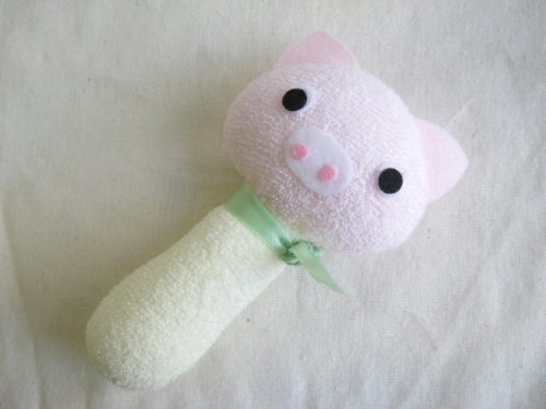 日本製 ベビー用ラトル 鈴入りがらがら ブタさん ピンク