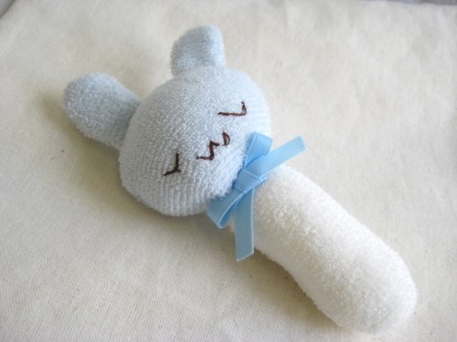 日本製 ベビー用ラトル 鈴入りがらがら うさぎ サックス