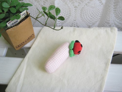 日本製 ラトル(がらがら)てんとう虫 にぎにぎ 鈴入り ピンク