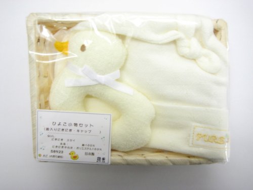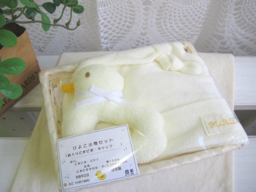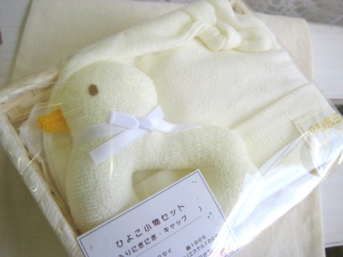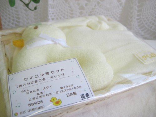 日本製 ラトル ベビーお帽子のギフト用2点セット ひよこ クリーム 58923