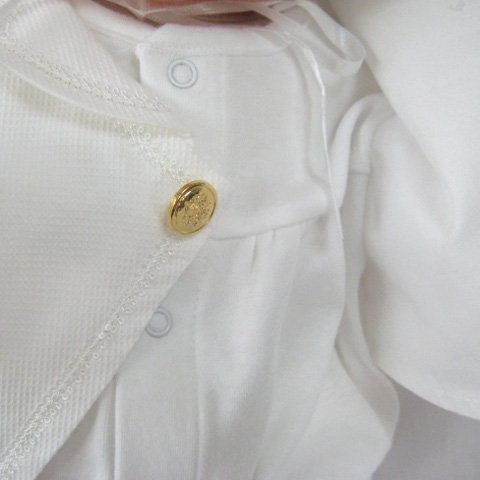 男の子におすすめのタキシードデザイン!シンプルで可愛いデザインなので、お披露目の時やお食い初め(百日祝い)などの際にも活躍してくれそうですね。股部分のスナップボタンを付け替えるとカバーオールにもなる、便利なツーウェイタイプのドレスです!