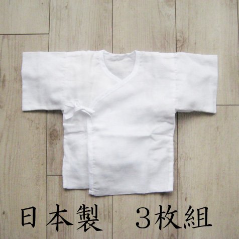 日本製 ホワイト無地 ガーゼ短肌着 3枚組セット 新生児用