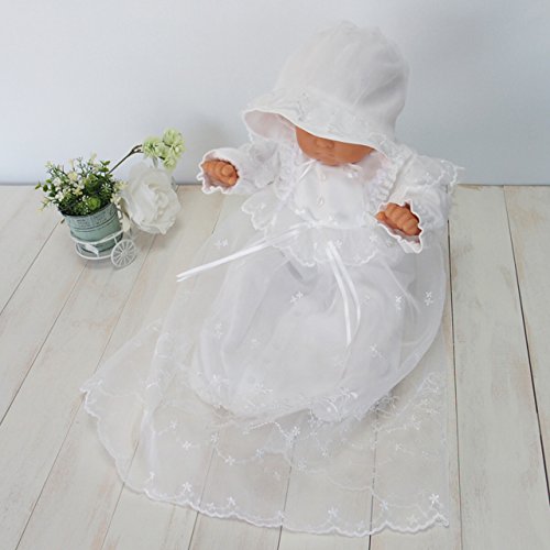 - 上品な刺繍入りのオーガンジーコート、ホワイト無地のツーウェイオール、お帽子の3点セット!