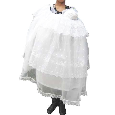 - バラの刺繍入り2段オーガンジーの豪華なロングケープ