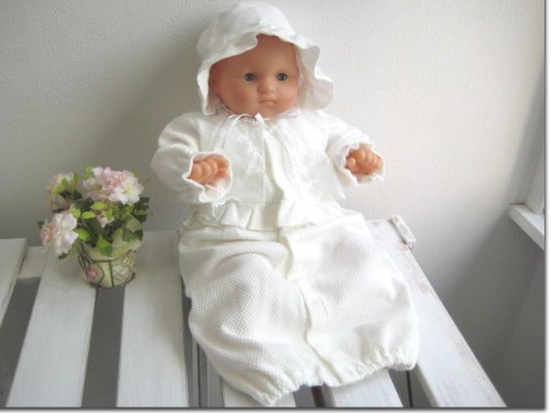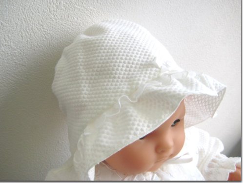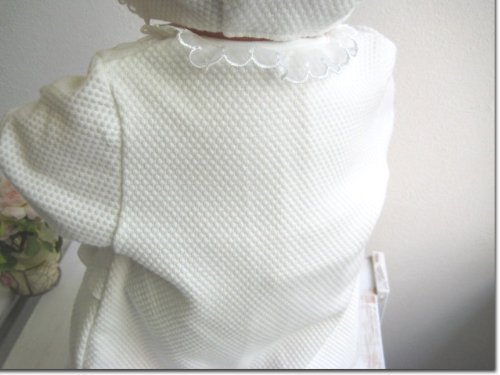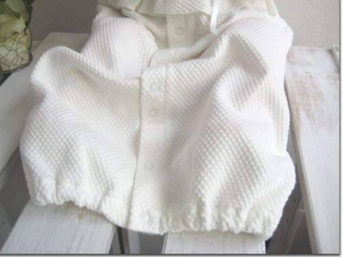 冬物素材 お帽子付き 新生児ベビードレス2点セット 11504 ホワイト