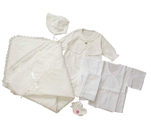 生地・縫製ともに高品質な日本製!お帽子とベビードレスは縫着されておりません。股部分のスナップボタンの付け方を替えるとカバーオールにもなるツーウェイタイプ!お宮参り・お披露目などに大活躍してくれる店長もおすすめの6点セット!