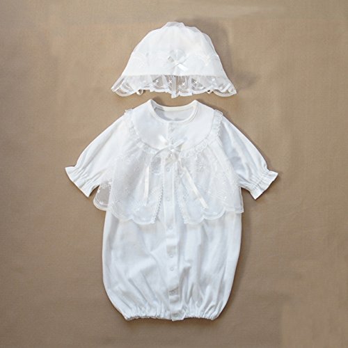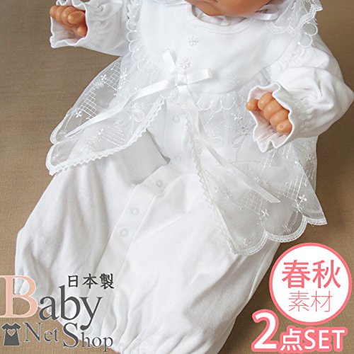 春物素材 新生児赤ちゃんの退院時 お宮参り用 お帽子付きベビードレス2点セット 65513
