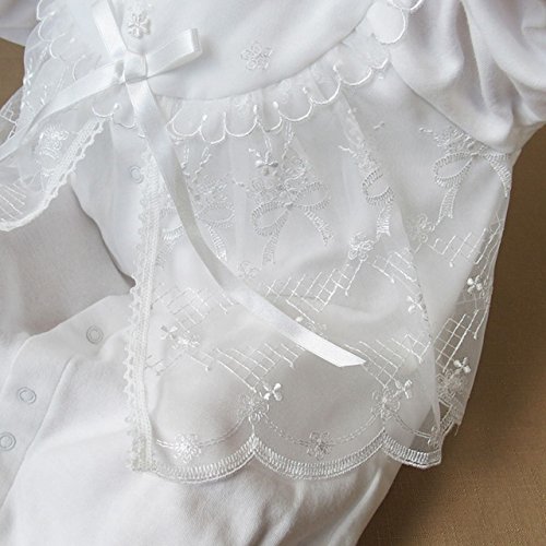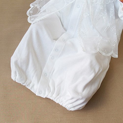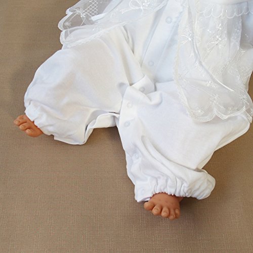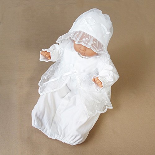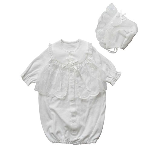 現在、入荷待ちのため、10月15日 水曜日からの発送となります。お帽子付きベビードレス2点セット!シンプルで可愛いデザインなので、お披露目の時やお食い初め(百日祝い)などの際にも活躍してくれそうですね。股部分のスナップボタンを付け替えるとカバーオールにもなる、便利なツーウェイタイプのドレスです!光沢のあるサテンリボンもポイントですよ♪襟元はシンプルな丸襟になっています。スタンダードで上品な柄の刺繍入りオーガンジー!ドレスの胸元部分の裏地は綿100%のガーゼを使用しています。敏感な肌の赤ちゃんにも優しいデザインですよ。