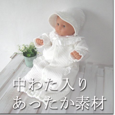 冬物 中わた入りあったか素材ベビードレス・お帽子 新生児用セレモニードレス2点セット