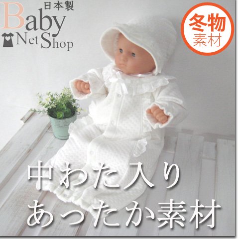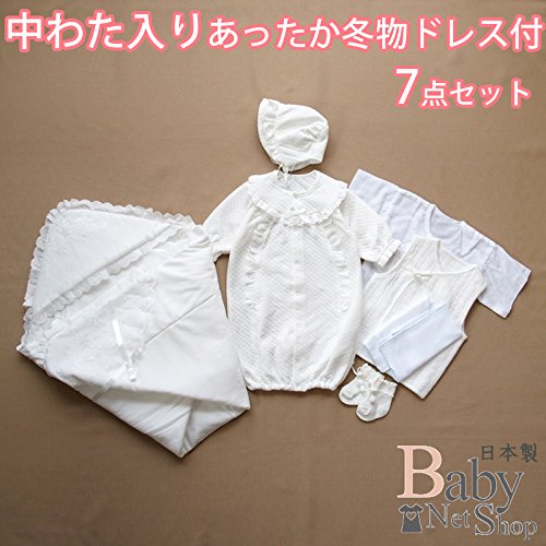 冬物 中わた入りあったかベビードレス おくるみアフガン付き7点セット 新生児セレモニードレス