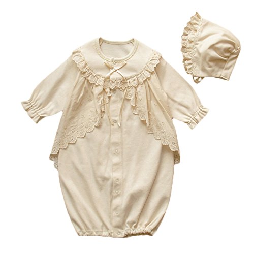生地・縫製ともに高品質な日本製 退院時や出産祝いにおすすめ。安心安全の日本製 オーガニックコットン100% 表示サイズ50から70 新生児から6か月を目安にお考えください。お帽子とベビードレス(ツーウェイタイプ)の2点セット!お帽子は、アゴ紐結び式なので、サイズフリーです。お帽子の裏地は、柔らかい肌触りで吸湿性にも優れたガーゼを使用。全体的に華美すぎず、上品で素敵なデザイン。首まわりは、すっきりとした丸襟♪肌触りがとっても柔らかい素材です。ベビー服・ベビードレス専門の縫製工場で生産され、生地、製品での厳しい検査をクリアした高品質なベビードレスです。ドレス部分は、股下部分のスナップボタンの付け方を変えるとカバーオールにもなる、便利なツーウェイタイプです♪