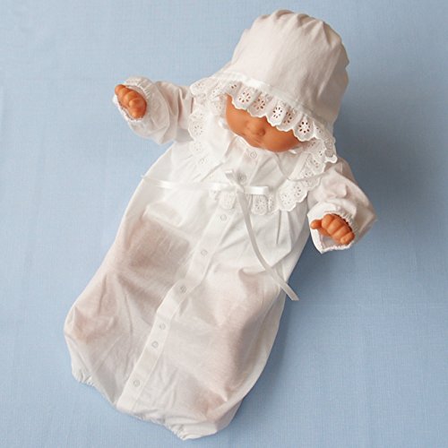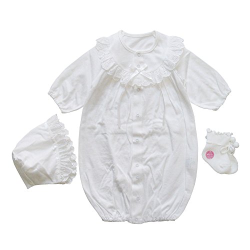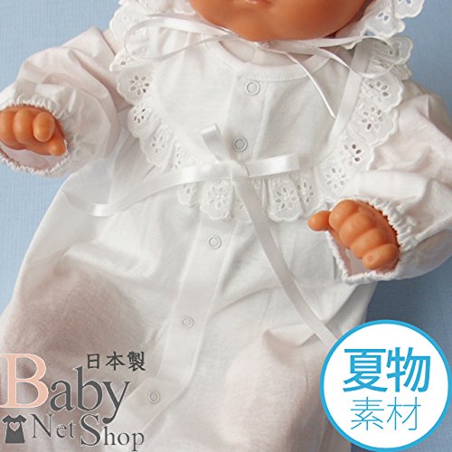 安心安全の日本製 新生児赤ちゃんの退院時やお宮参りにおすすめのベビードレス お帽子 ドレス ベビーソックスの3点セット 着用期間は、新生児から6ヵ月を目安にお考えください。夏物の天竺素材 綿100% ベビーソックス(綿 アクリル ナイロン ポリウレタン 混*肌に触れる部分は綿になります。)