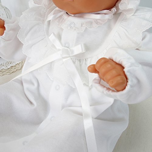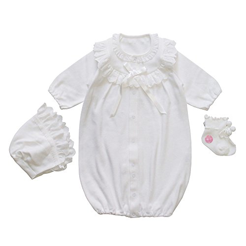 安心安全の日本製 新生児赤ちゃんの退院時やお宮参りにおすすめのベビードレス お帽子 ドレス ベビーソックスの3点セット 着用期間は、新生児から6ヵ月を目安にお考えください。春秋物のスムース素材 綿100% ベビーソックス(綿 アクリル ナイロン ポリウレタン 混*肌に触れる部分は綿になります。)