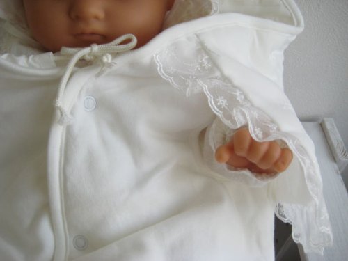 - 上品な刺繍入りオーガンジーをあしらった上品なデザインなので、新生児赤ちゃんの退院時やお宮参りにもおすすめ!