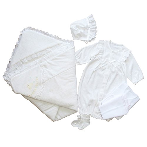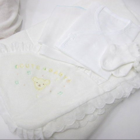 生地・縫製ともに高品質な日本製!新生児赤ちゃんの退院時やお宮参り用セットとしてもおすすめの6点セット!シンカーパイルは、通常のパイル地よりも、目が少し細かく、さらりとした肌触りが特長です。新生児ソックスは、梵天付き 紐結び式なのでズレないソックス!実寸で8センチ!品質は 綿・アクリル・ナイロン・ポリウレタン混です。おくるみは、体の小さな赤ちゃんの抱っこには、とっても重宝しますよ!お昼寝マットとして、オムツ替え用として、ブランケットとして・・・、大活躍してくれるおくるみアフガンです 赤ちゃんをくるんであげると、フードになる部分がございます。