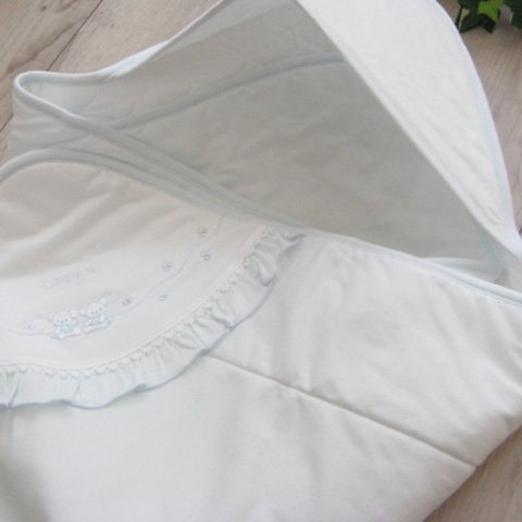夏物素材 スーピマ綿 ベビーアフガン おくるみ サックス