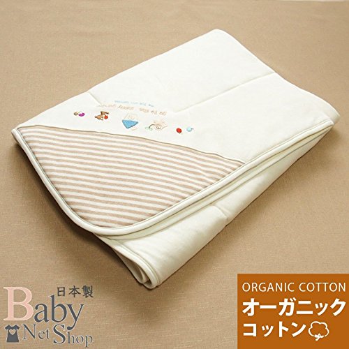 素材は肌触りがとっても優しいオーガニックコットン100% 縫製は安心安全で高品質な日本製 サイズは85センチ×85センチ 裏地はガーゼ(綿100%)中わた入りキルト仕上げ。 【黒っぽい点状の「綿かす」について】 オーガニックコットンは、綿花の栽培から製品加工・出荷するまで、一切の化学薬品が付着しないように管理されております。 薬品による洗浄も行っていないため、製品に「綿かす」が付着している場合がございますが、これは綿の葉や茎の破片が生地を作っている際に入り込んでできるもので、品質的には問題ありません。これらは、一貫して化学薬品を使用していないオーガニックコットン製品の特徴でもあります。