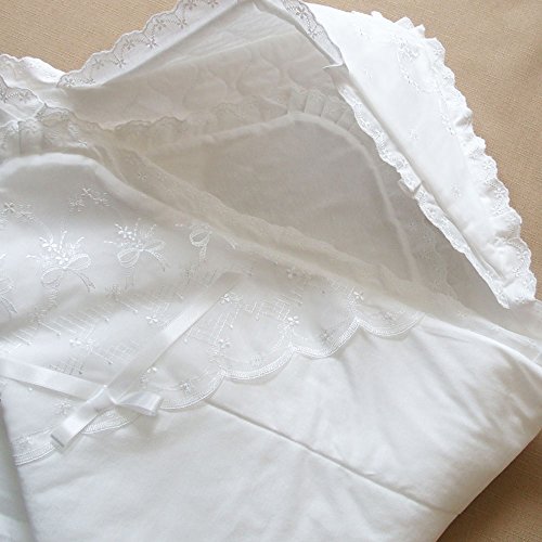 天竺はスムースより、少し薄手の素材!刺繍入りオーガンジー付きで高級感あります。 新生児赤ちゃんのお宮参りや退院時に大活躍してくれますよ!他にも 赤ちゃんのお昼寝用の敷きフトンとして、または、肌かけフトンとして、オムツ替えのマットとして、冬は防寒対策として、夏は赤ちゃんの汗取り用としておすすめのアフガンです。