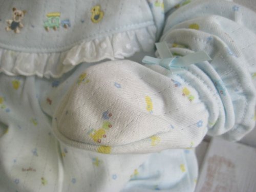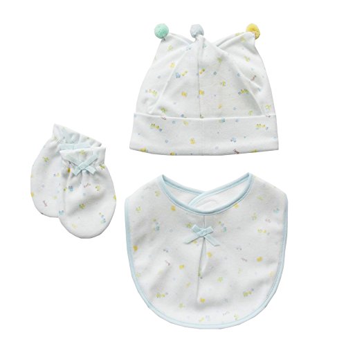 新生児ベビー スタイ ミトン 帽子 3点セット!出産祝い ギフトにもおすすめ!プリント総柄 サックス 209043