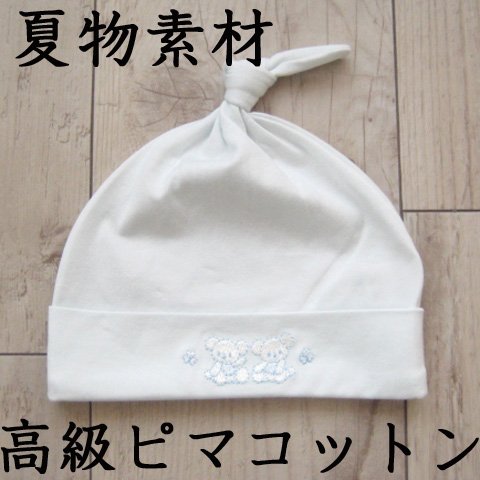 夏物素材 新生児ベビー用お帽子 スーピマ綿 サックス