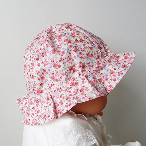 日本製 ベビー用 お帽子 サイズ調節ひも付き 42-46センチ 38996 花柄 ピンク