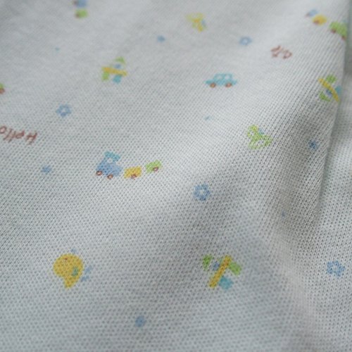 柔らかい肌触りで、春秋におすすめの素材!胸元の裏地は、ガーゼを使用。敏感な肌の赤ちゃんにも優しいデザインです!安心安全の生地縫製ともに日本製!