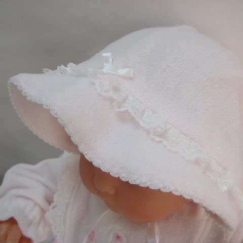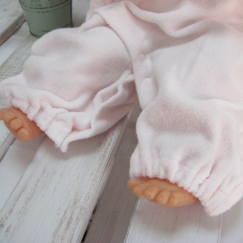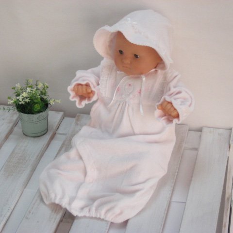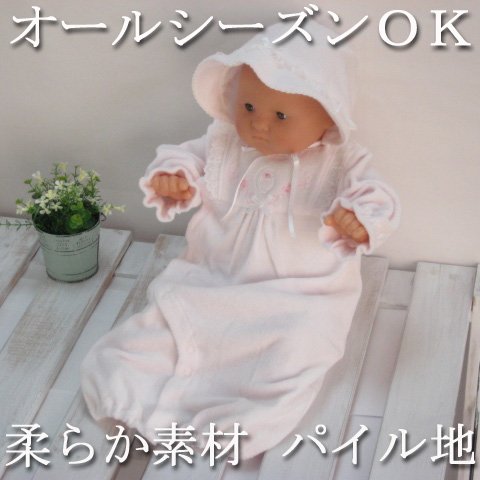 柔らかパイル地 新生児用 お帽子ツーウェイオールの2点セット ピンク