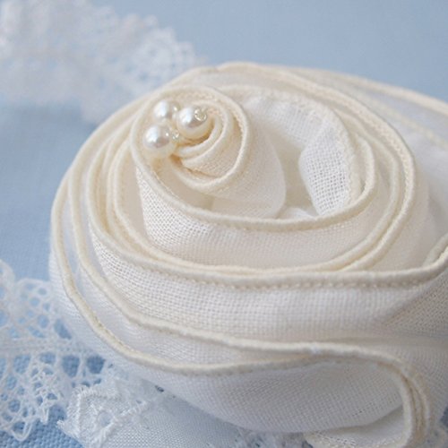 ローズモチーフが付いたシンプルで上品なデザインのベビー用ヘアバンド。 サイズ 40から45センチ *着用期間は、新生児から12か月を目安にお考えください。 モチーフ部分 綿100%ガーゼ ゴムレース部分 綿・レーヨン・ポリウレタン 生地・縫製ともに日本製 伸びの良いゴムレースなので優しいフィット感です。 モチーフのローズ直径は約6センチです。 ひとつずつ手作業で丁寧に作られています♪ 大切な記念日を華やか演出にしてくれる上品なデザイン♪
