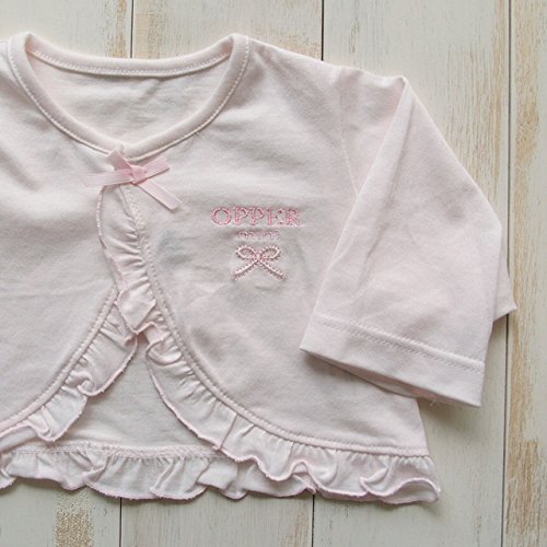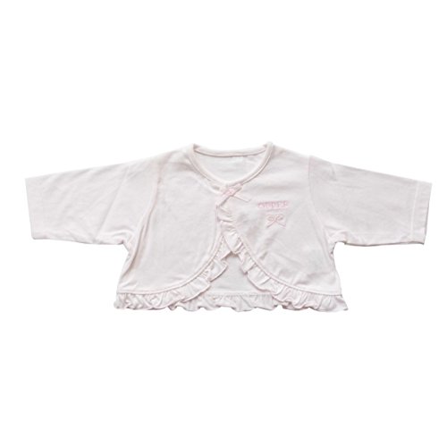 - カラーは淡いピンクです。シンプルで上品なデザインのベビー用ボレロ(カーディガン)