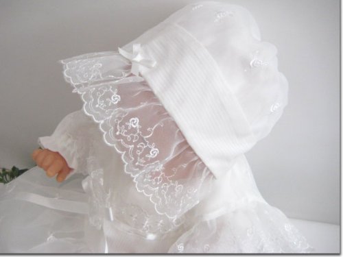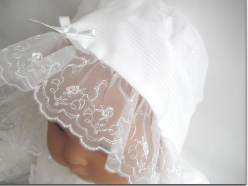 - お帽子にも長めのフリルが付いています!内側は綿100%のガーゼ!清潔で上品なイメージですよ!