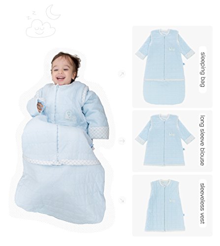 L-LIANG ベビー スリーパー 寝袋 春秋冬向け 防寒 着る布団 袖取り外しOK、新生児~3歳頃向け、多機能 ベビー寝具 赤ちゃん 出産祝い ギフト (ブルー, M)