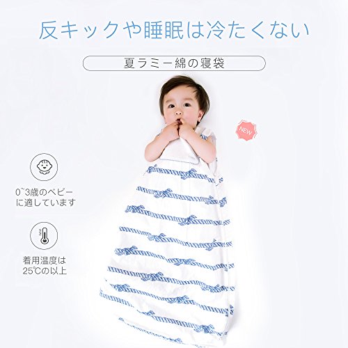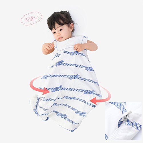 L-LIANG スリーパー ベビー寝袋、ラミー綿 通気性/クール性抜群 3ヶ月~3歳向け、 ノースリーブ 夏着る布団、多機能 子供寝具 出産祝い ギフト (M)