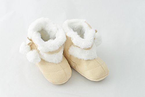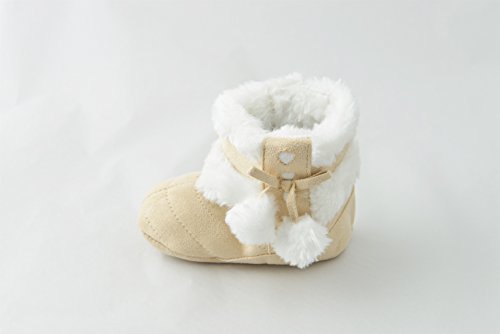 女の子 赤ちゃん ベビーブーツ ふわふわ あったか 履きやすい ショート ブーツ (12cm, ベージュ)