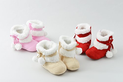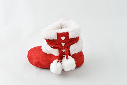 女の子 赤ちゃん ベビーブーツ ふわふわ あったか 履きやすい ショート ブーツ (13cm, レッド)