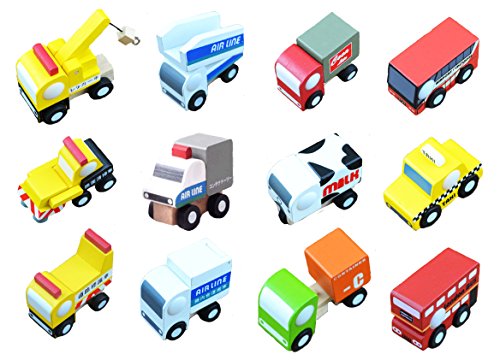 - 素朴な風合い。12種類の乗り物をひとつひとつ手に取って覚えるのに最適です。