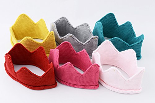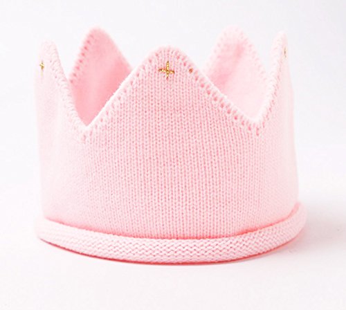 ベビー 用 ニット素材 の 王冠 ハット ( ハーフバースデー 誕生日 記念日 の ベビーアート に ) (薄ピンク)