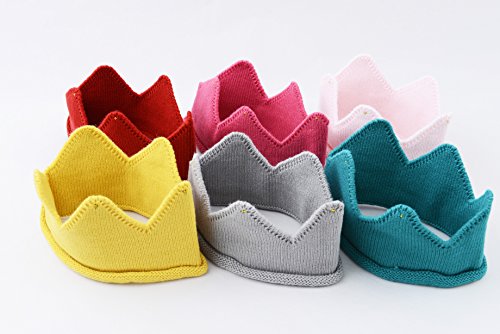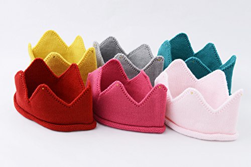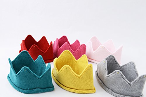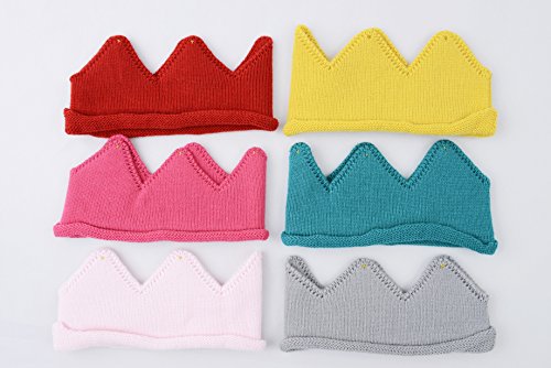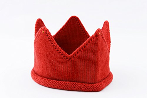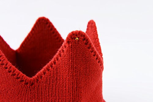 ベビー 用 ニット素材 の 王冠 ハット ( ハーフバースデー 誕生日 記念日 の ベビーアート に ) (レッド)
