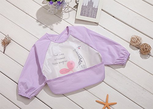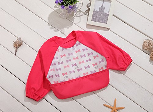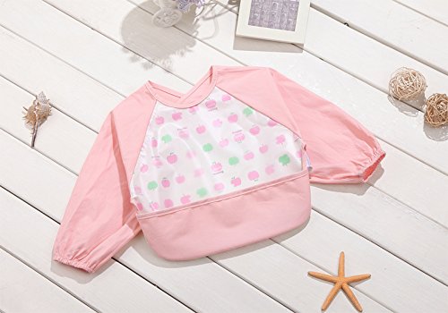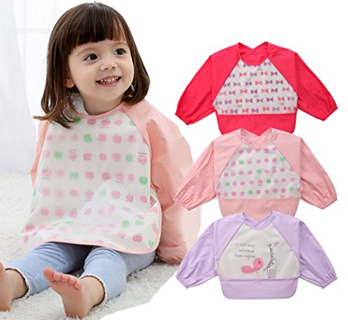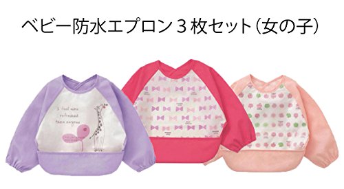 ベビー 食事 用 防水 エプロン 長袖 赤ちゃん 幼児 お食事 お食事練習 お絵描き ねんど遊び などに最適 (3枚セット, 女の子)