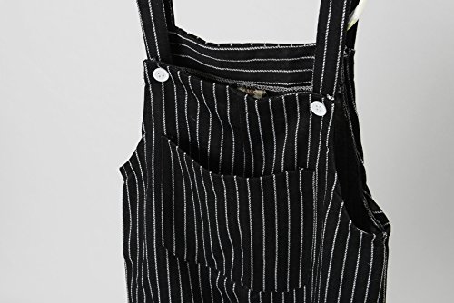 - 黒に白のストライプ柄のシンプルデザインのオーバーオール。