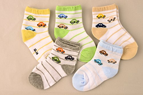 ベビー キッズ 赤ちゃん 靴下 くるぶし ショート 丈 ソックス バラエティ 5足セット (クルマ)