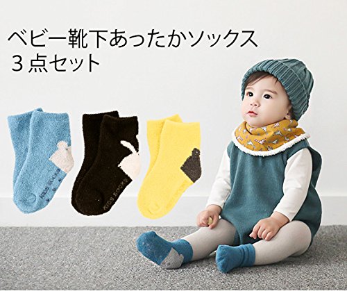 ベビー 靴下 あったか ソックス 男の子 女の子 キッズ ガール カワイイ アニマル デザイン 3足セット (S ( 0~2歳 ))