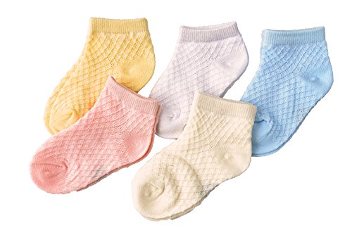 ベビー 幼児 男の子 女の子 靴下 ショート 丈 ソックス 5足セット ( 網目 メッシュ 綿 赤ちゃん お 肌に優しい ) (A)