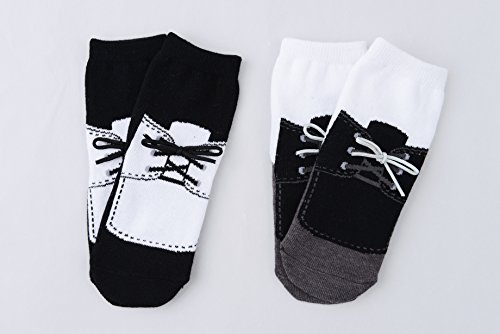 靴ひも付のブーツ風の靴下、白黒2足セットです。結婚式やパーティなどフォーマルな装いに重宝されるデザイン。ご兄弟と合わせて着せて記念撮影。【サイズ】9~12cm 12~15cm 足裏には滑り止め付き。