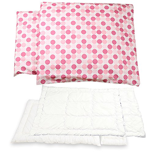 掛け敷き布団セット(カバー付)ピンクドット柄 掛け布団 幅90cm×長さ120cm、掛け布団用アタッチメント、幅90cm×長さ30cm、掛けカバー、掛けアタッチメントカバー、敷き布団 幅70cm×長さ120cm、敷き布団用アタッチメント幅70cm×長さ30cm、敷きカバー、敷きアタッチメントカバー