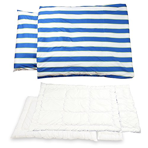掛け敷き布団セット(カバー付)ブルーストライプ柄 掛け布団 幅90cm×長さ120cm、掛け布団用アタッチメント、幅90cm×長さ30cm、掛けカバー、掛けアタッチメントカバー、敷き布団 幅70cm×長さ120cm、敷き布団用アタッチメント幅70cm×長さ30cm、敷きカバー、敷きアタッチメントカバー
