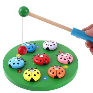家族みんなで 遊ぼう カラフル かわいい 木製 てんとうむし釣りゲーム 7匹のキュートな てんとうむし